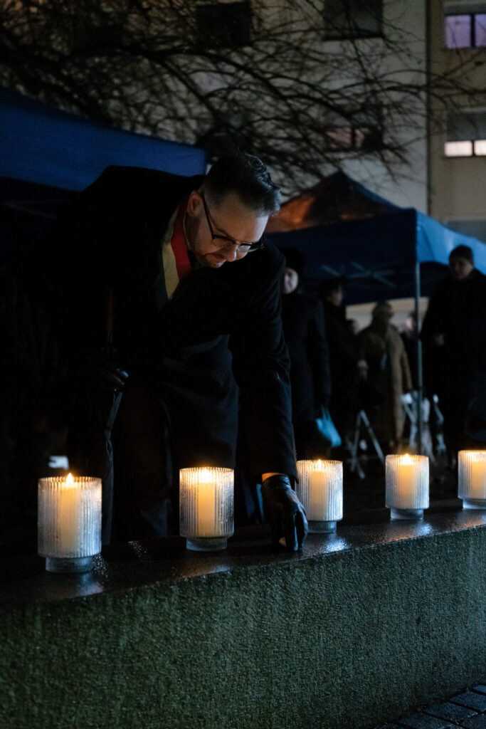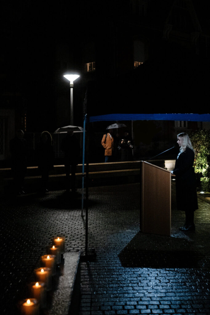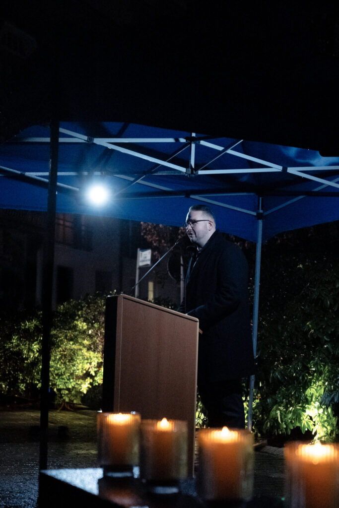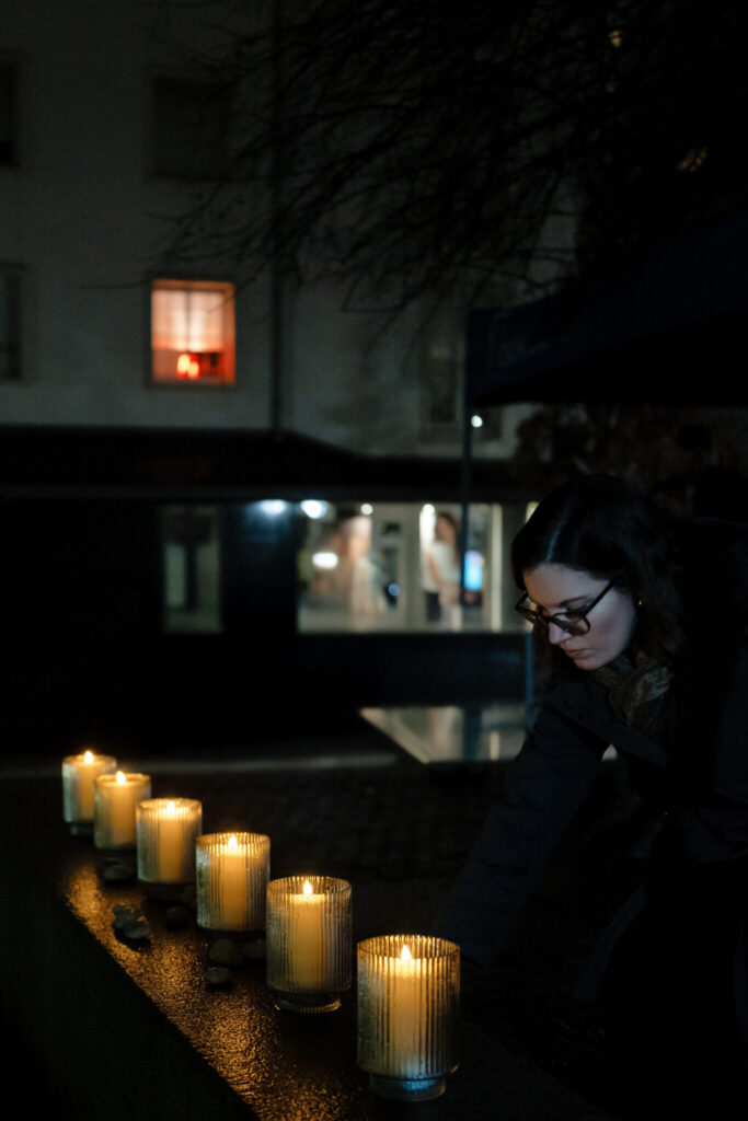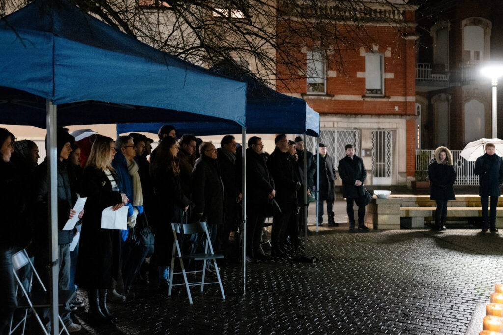 La commémoration a eu lieu sur la place de la Synagogue. Dans un cadre solennel et respectueux, des pierres ont été déposées au pied des stèles commémoratives, tandis que les noms des victimes juives d’Esch-sur-Alzette, déportées et assassinées, ont été énoncés à voix haute, dans un moment de silence et de profonde gravité.
