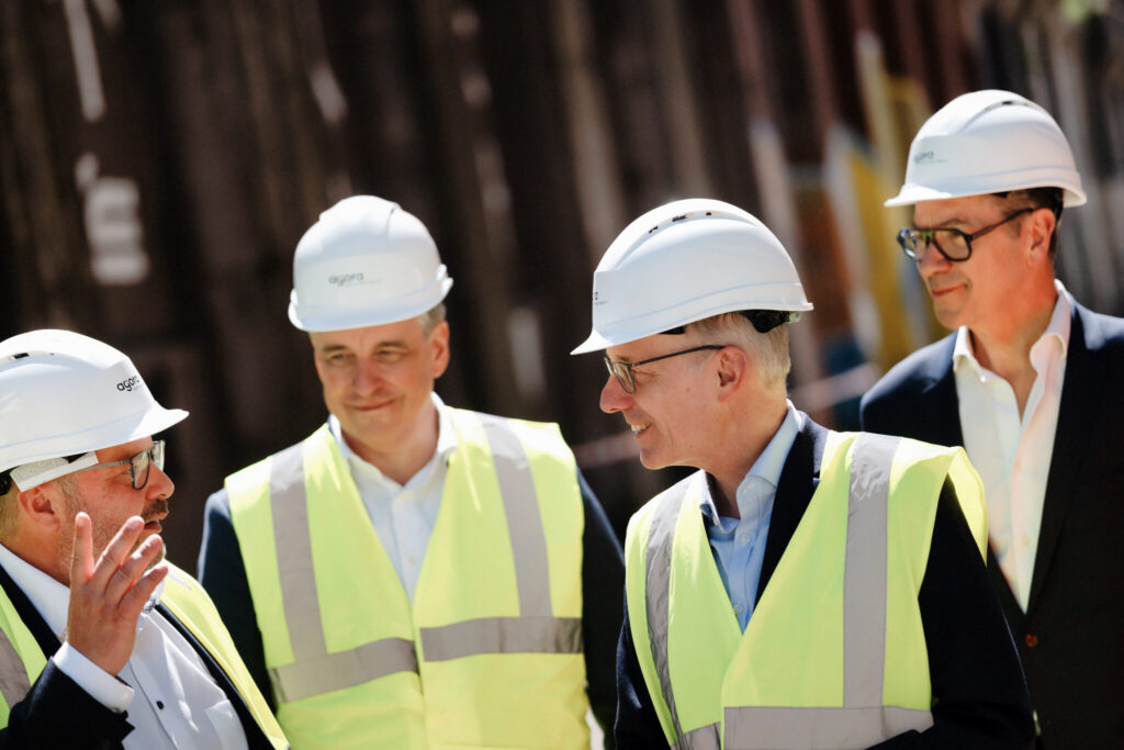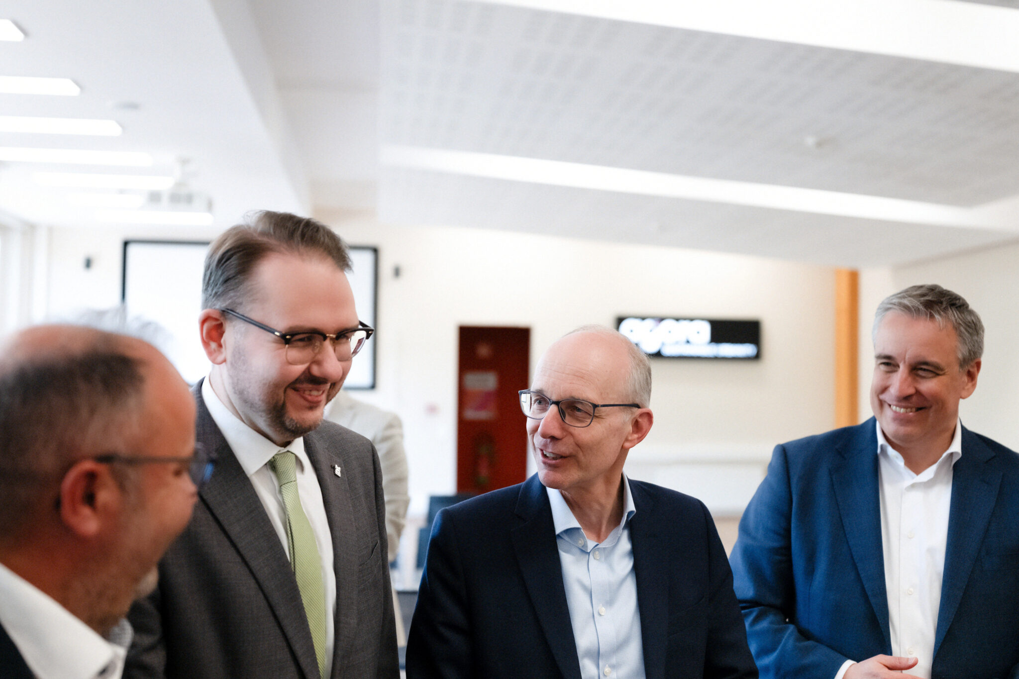 Le 29 avril 2026, le bourgmestre de la Ville d’Esch, Christian Weis, et le bourgmestre de Schifflange, Carlo Feiereisen, ont accueilli le Premier ministre Luc Frieden ainsi que le ministre du Logement et de l’Aménagement du territoire Claude Meisch pour une visite officielle du site Metzeschmelz, en présence de représentants d’AGORA.